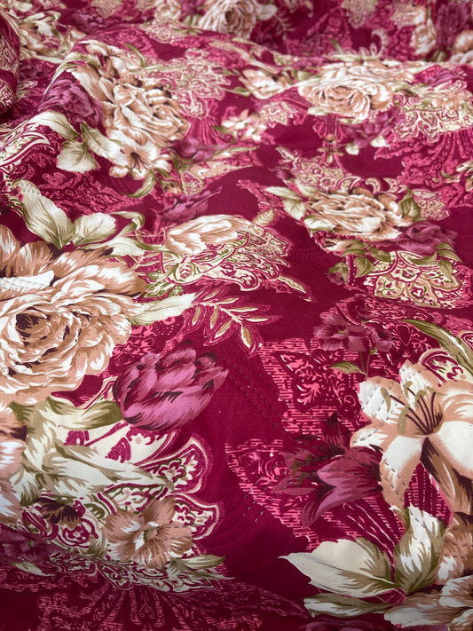 100% Cotton Reversible Dohar Double Bed, Soft Lightweight Bed Blanket, AC Dohar Blanket for Summers/Winter (Size 84 inch by 88 inch, Pink Blossom)