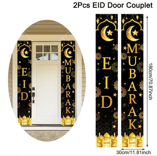 1pair Eid Mubarak Decorations Banner, Front Door Muslim Ramadan Welcome Eid AI-Fitr Porch Sign