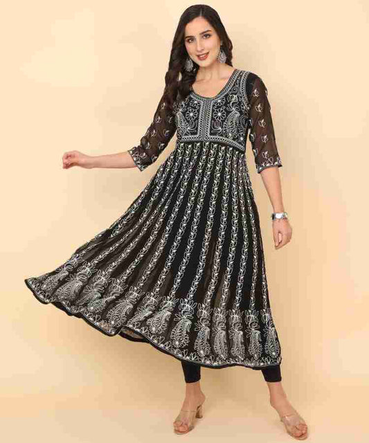 Beautiful designer lucknowi embroidery gown style anarkali suit