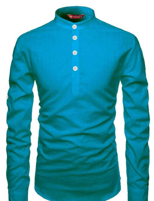 Beautiful designer Men's Slim Fit Full Sleeve Blue Cotton Short Kurta