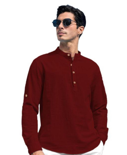 Beautiful designer Men's Slim Fit Full Sleeve maroon Cotton Short Kurta