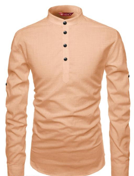 Beautiful designer Men's Slim Fit Full Sleeve peach Cotton Short Kurta