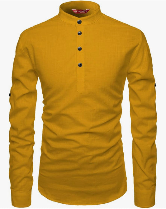 Beautiful designer Men's Slim Fit Full Sleeve Yellow Cotton Short Kurta