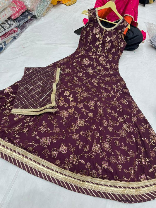 Beautiful designer anarkhali with sequins embroidery