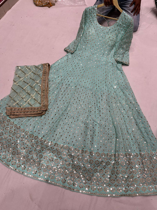 Beautiful designer anarkhali with faux miror work