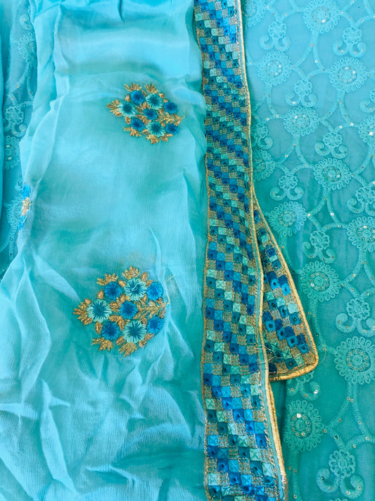 Beautiful designer unstitched lucknowi embroidery punjabi patiala suit