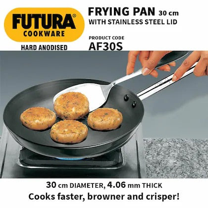 Hawkins Futura 30 cm Frying Pan, Hard Anodised Fry Pan with Stainless Steel Handle and Stainless Steel Lid, Big Frying Pan, Black (AF30S)