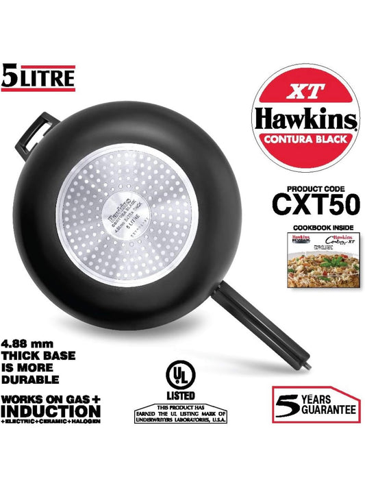 Hawkins Contura Black XT 5 Litre Inner Lid Pressure Cooker, Hard Anodised Cooker, Induction Cooker, Handi Cooker, Black (CXT50)