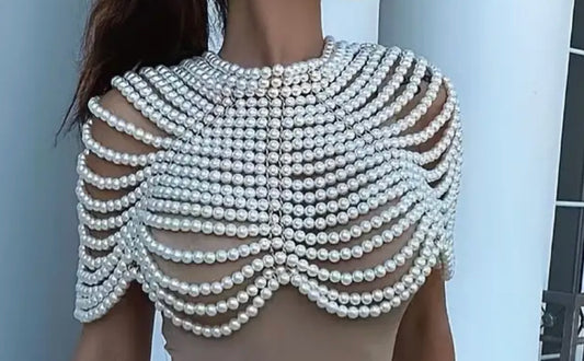 Beautiful designer Beaded Pearl Tassel Statement Shoulder Chain, Statement Accessory For Women