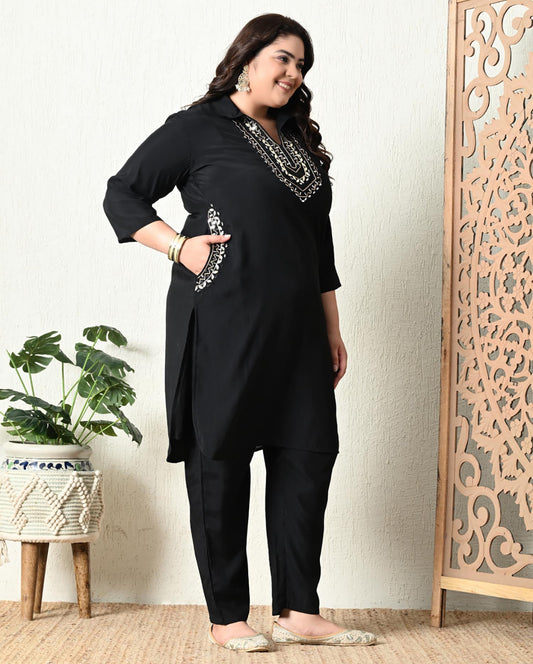 Beautiful designer BLACK KURTA WHITE TROUSER PAJAMA