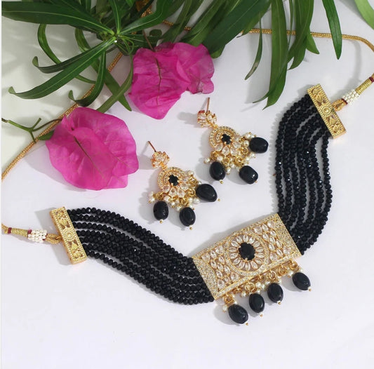 Beautiful designer Black Color American Diamond Choker Necklace Set
