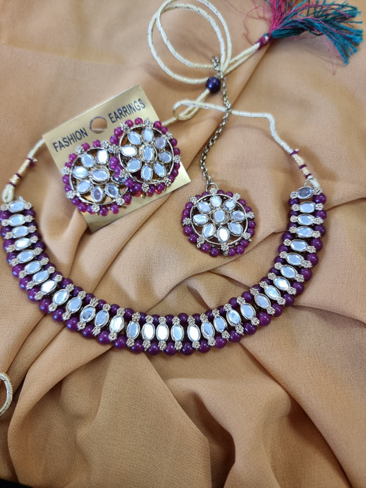 Beautiful designer choker set with studs earrings n tikkah