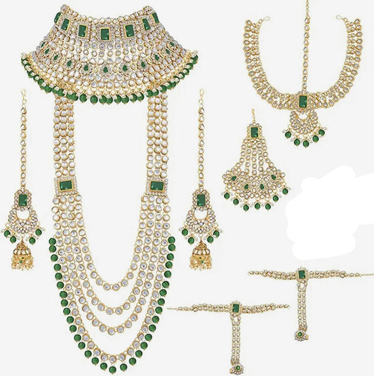 Beautiful designer Ethnic Indian Traditional Gold Plated Kundan Dulhan Bridal Jewellery Set with Choker Earrings Maang Tikka