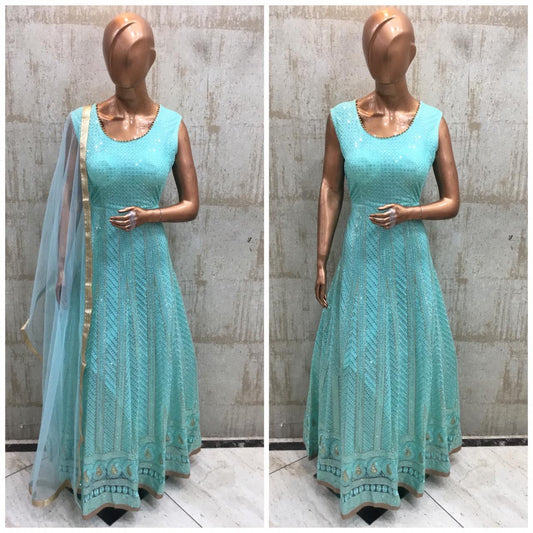 Beautiful designer lucknowi embroidery gown style anarkali suit