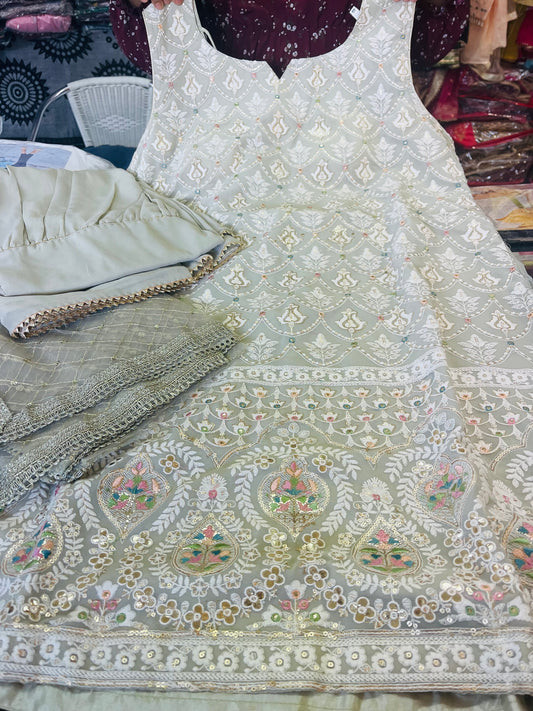 Beautiful designer anarkhali suit with lucknowi suit