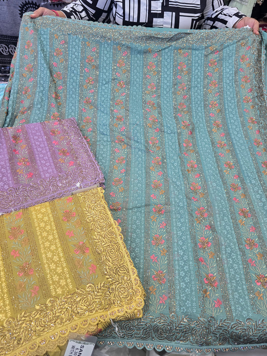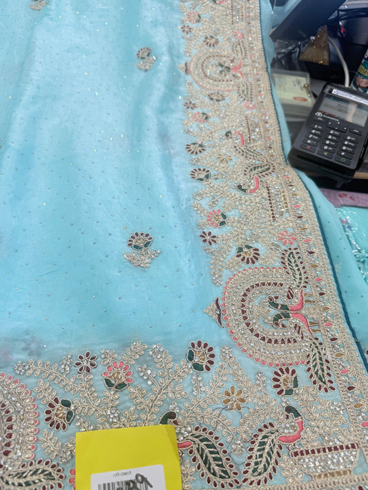 Beautiful designer fully embroidery saree with unstitched embroidery blouse