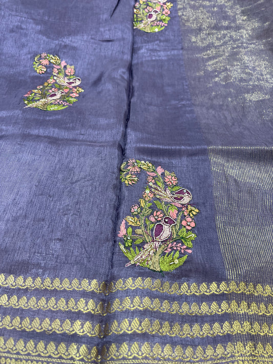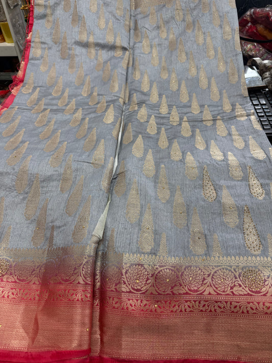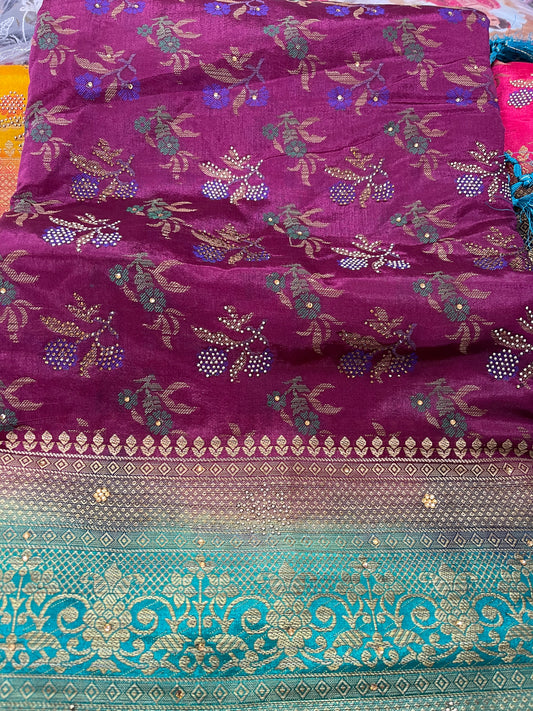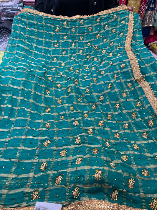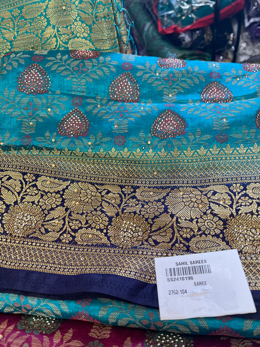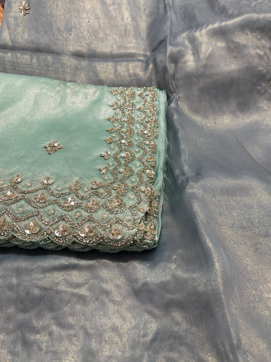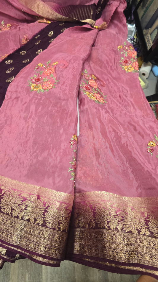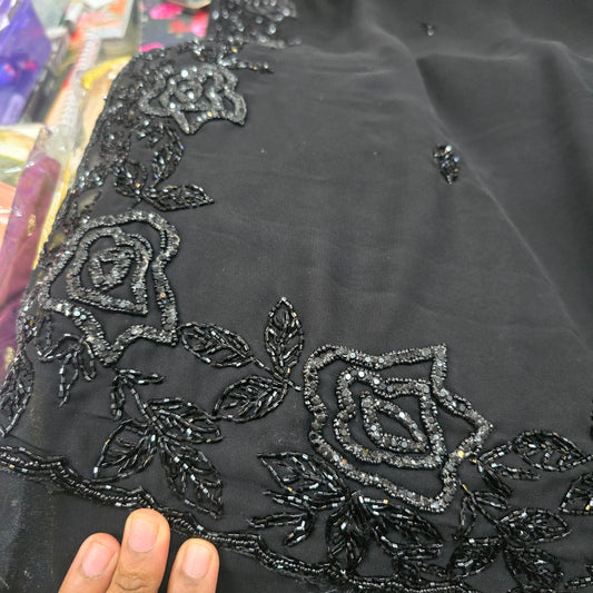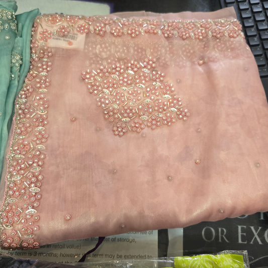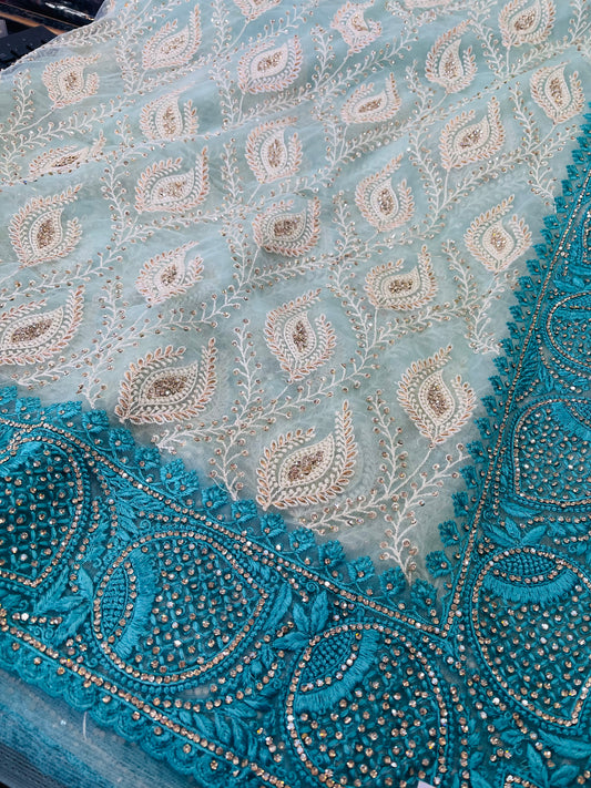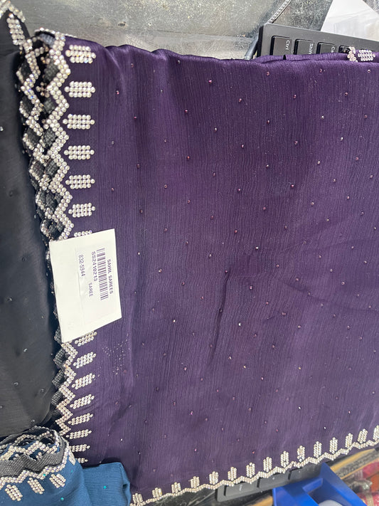 Beautiful designer Zarkan Stone Border & Belt Work Satin Silk Chiffon