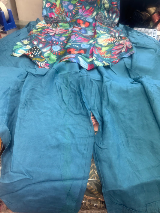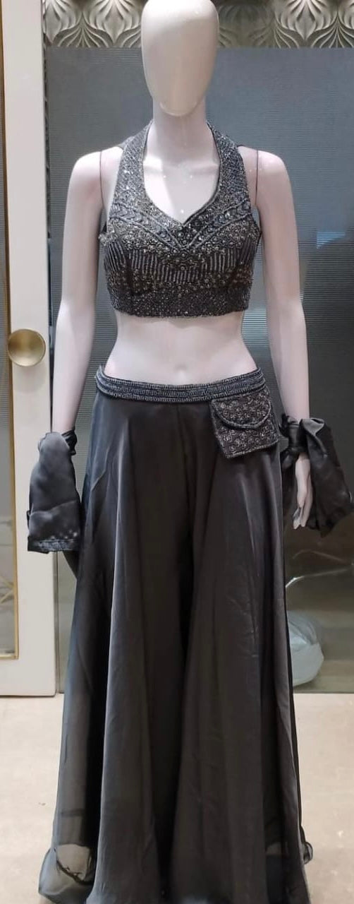 Beautiful designer fully embroidery crop top with plazo pants dupptta