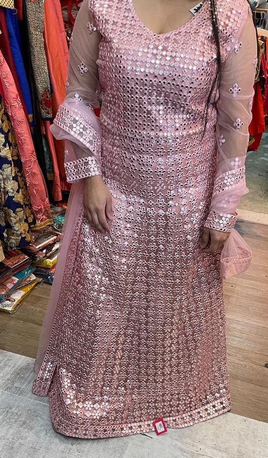Beautiful designer anarkhali with faux miror work