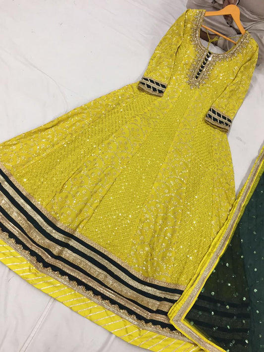 Beautiful designer lucknowi embroidery gown style anarkali suit