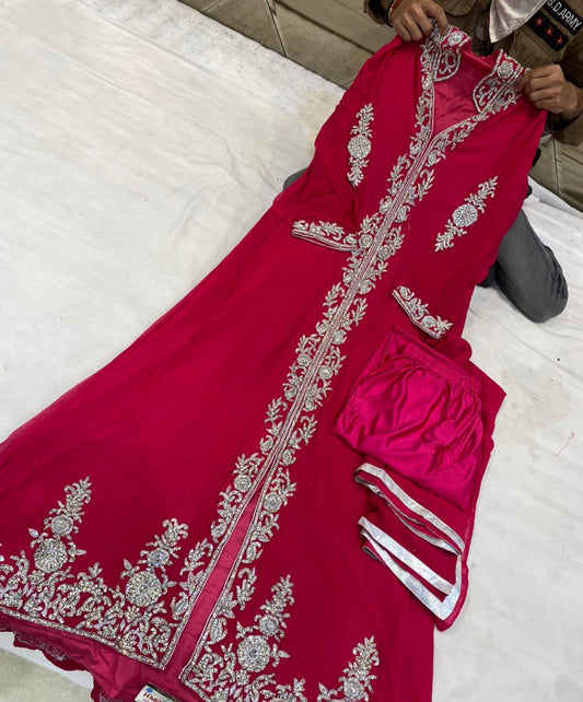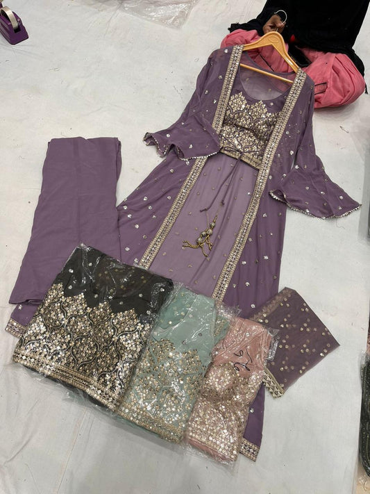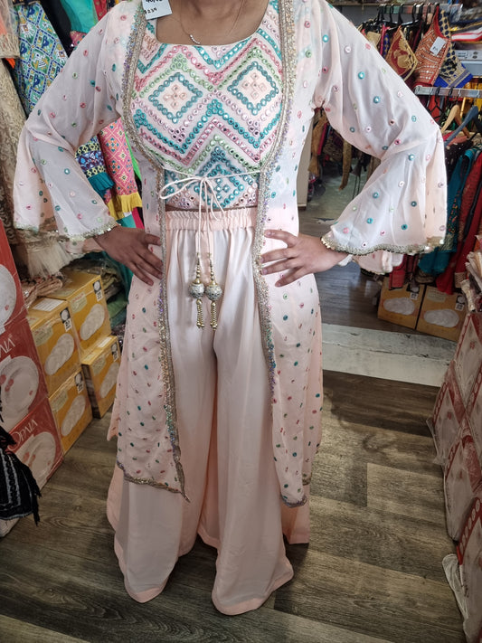 Beautiful designer indo western style crop top plazo suit with koti/shrug