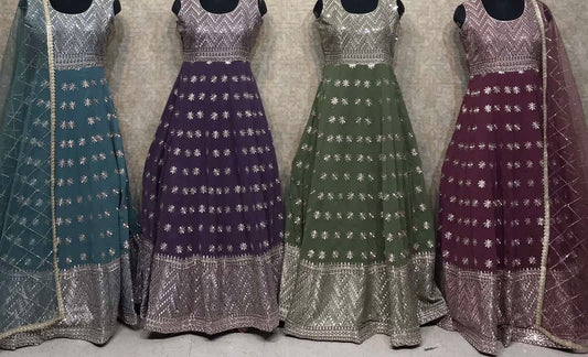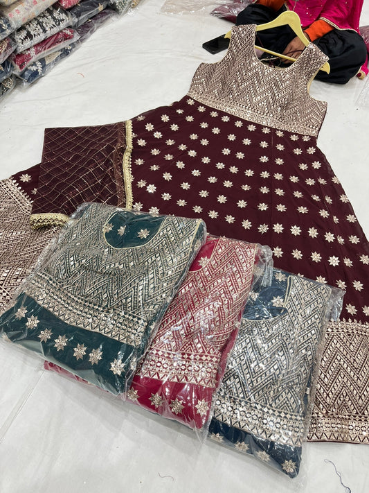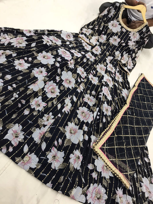 Beautiful designer short anarkali suits with floral embroidery dupptta