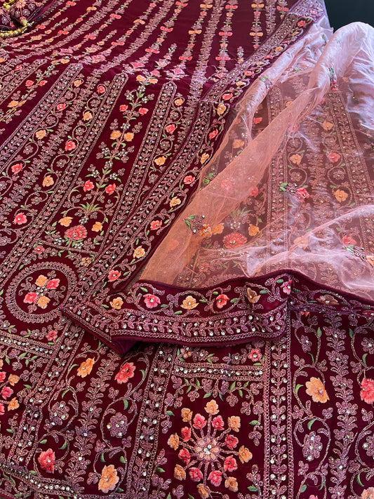 Beautiful designer heavily embroidery bridal/semi bridal lengha