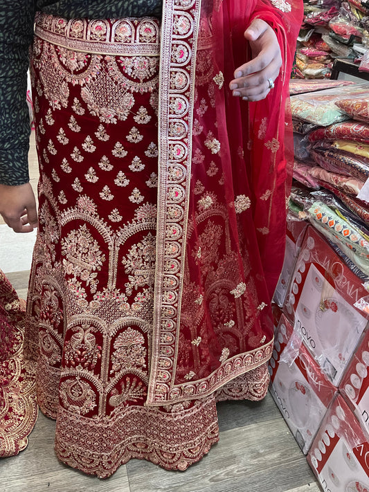 Beautiful designer bridal velvet unstitched lengha