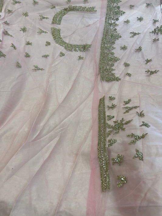 Beautiful designer unstitched lengha with mirror work