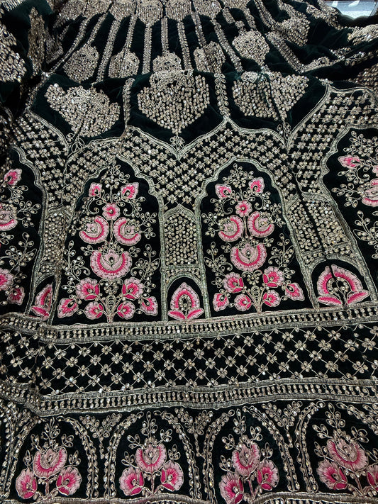 Beautiful designer heavily embroidery plus size Jimmy Choo semi stitch lengha