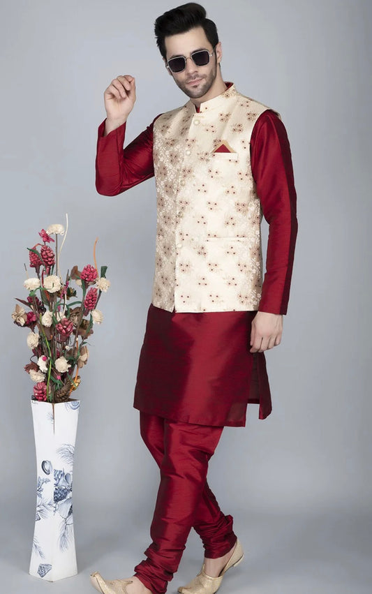 Beautiful designer Men's Slim Fit Full Sleeve maroon Cotton Short Kurta