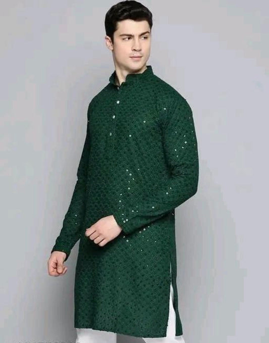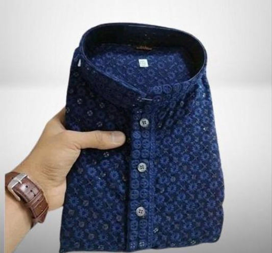 Beautiful designer Men's Slim Fit Full Sleeve Blue Cotton Short Kurta