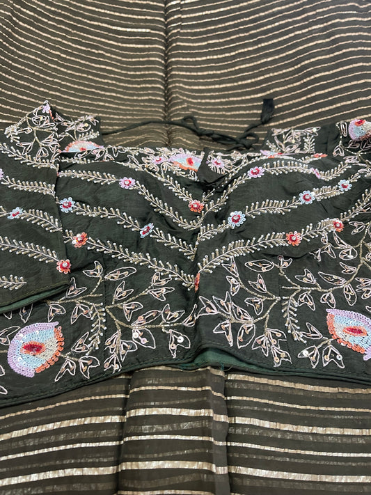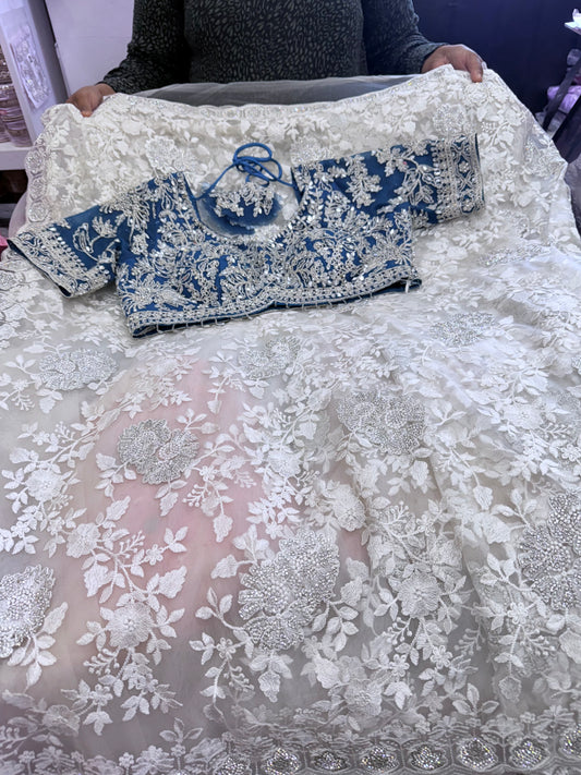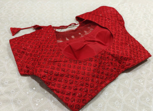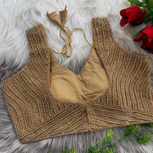 Beautiful Handcrafted Pearl Work In All Over Front And Back Of The Handmade Real Crystal Blouse