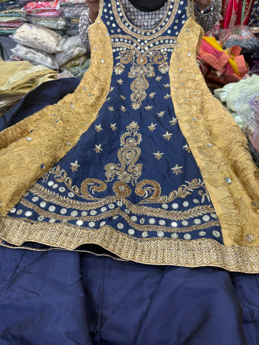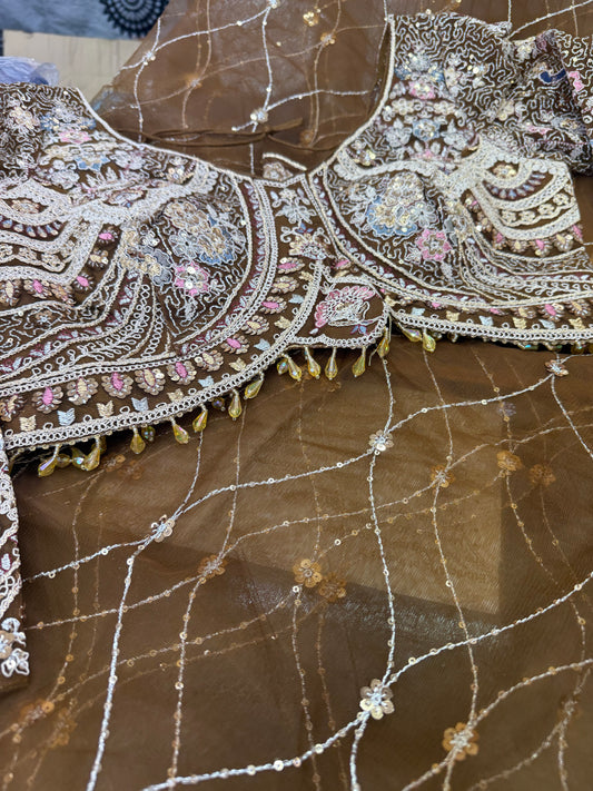 Beautiful designer Black Cape Tulle Embroidered Sequins Cape Open Wave Draped Skirt Set