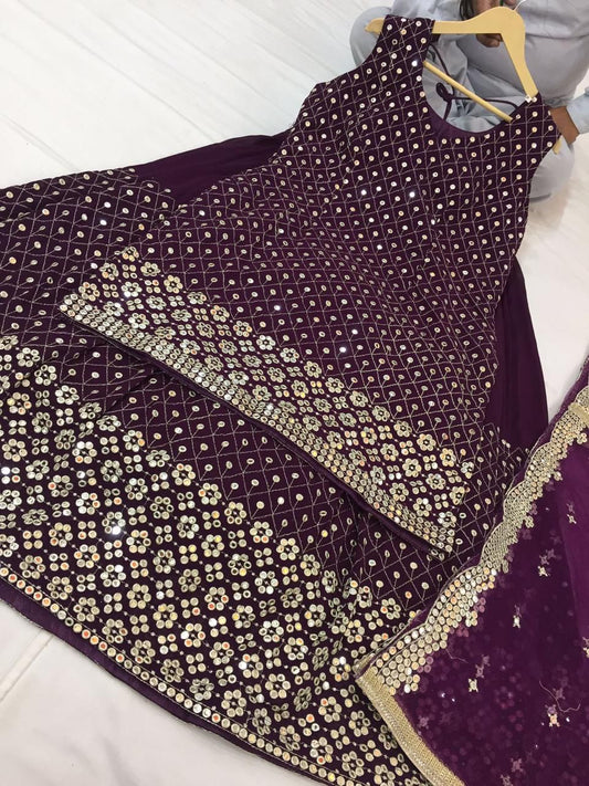 Beautiful designer lucknowi embroidery long top lengha suit