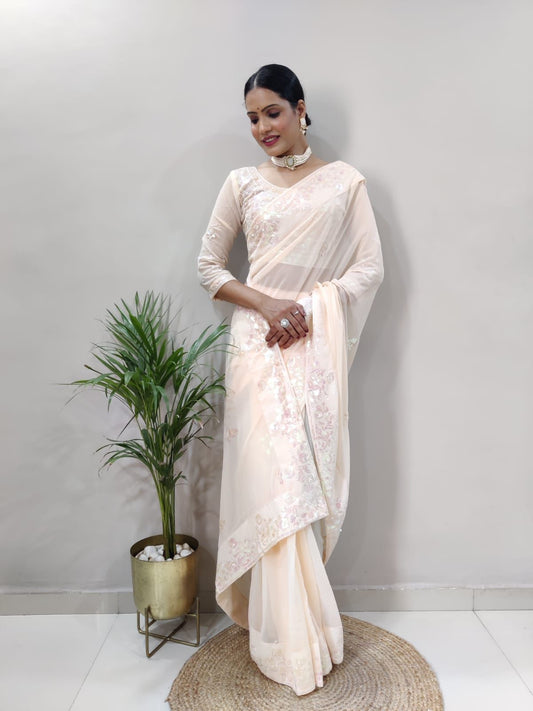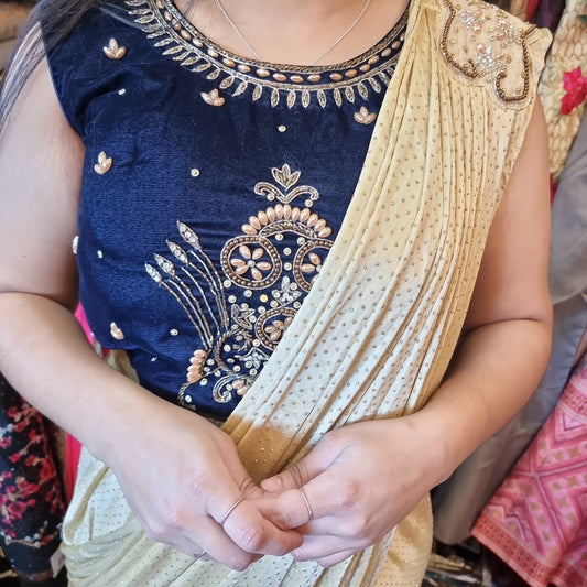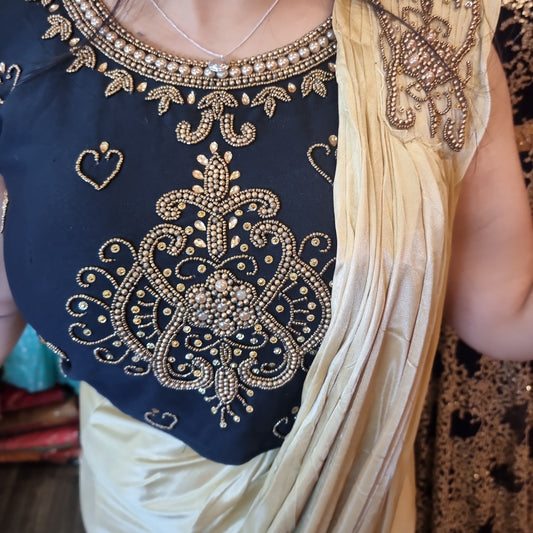 Beautiful designer Lavender Saree Set, Handcrafted Blouse, Draped Saree