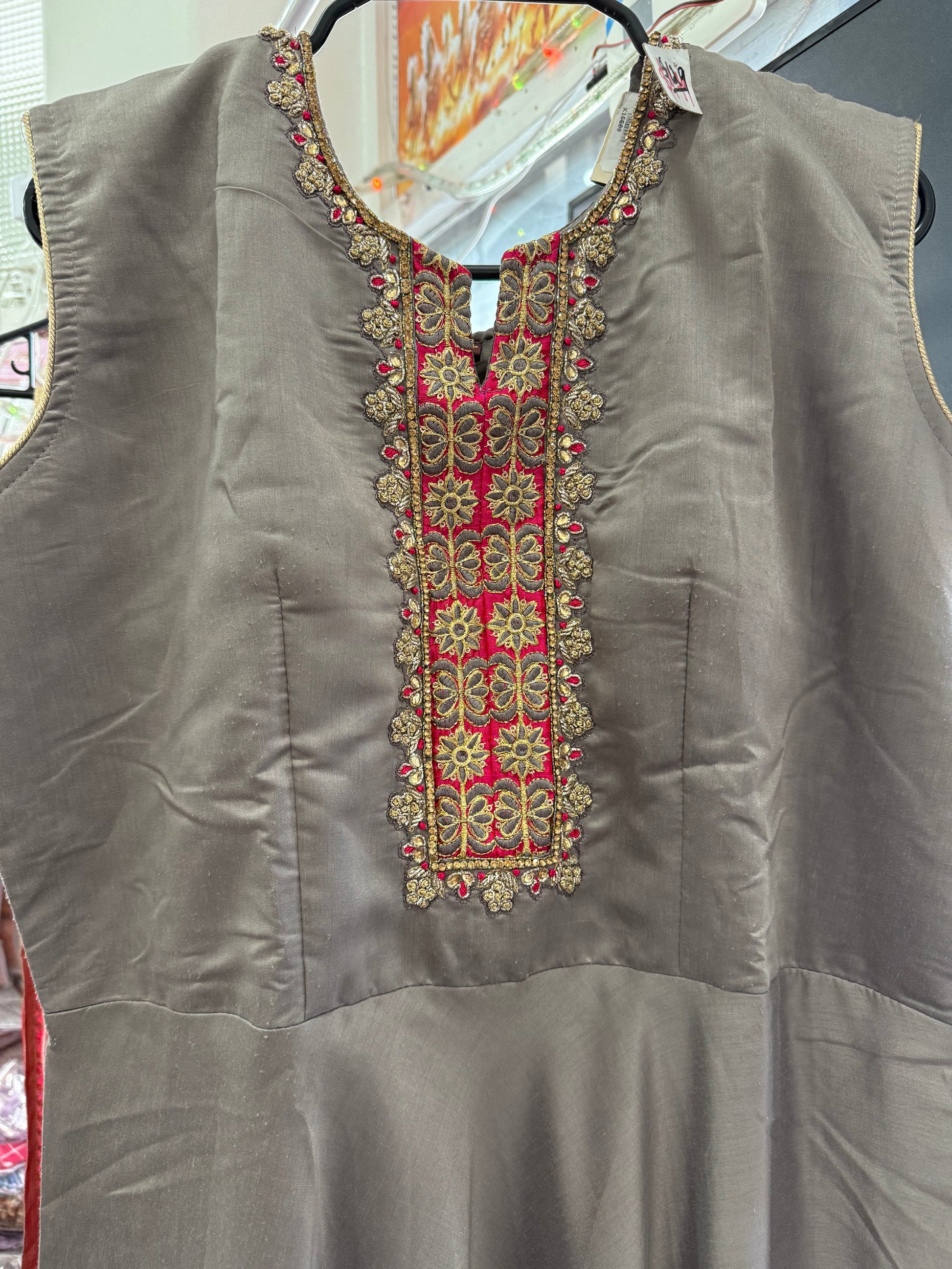 This beautiful designer anarkali suit is made from high-quality cotton silk fabric. The fully embroidered dupatta adds elegance and a traditional touch to the outfit. Perfect for special occasions, this suit is sure to make you stand out with its unique and intricate design.