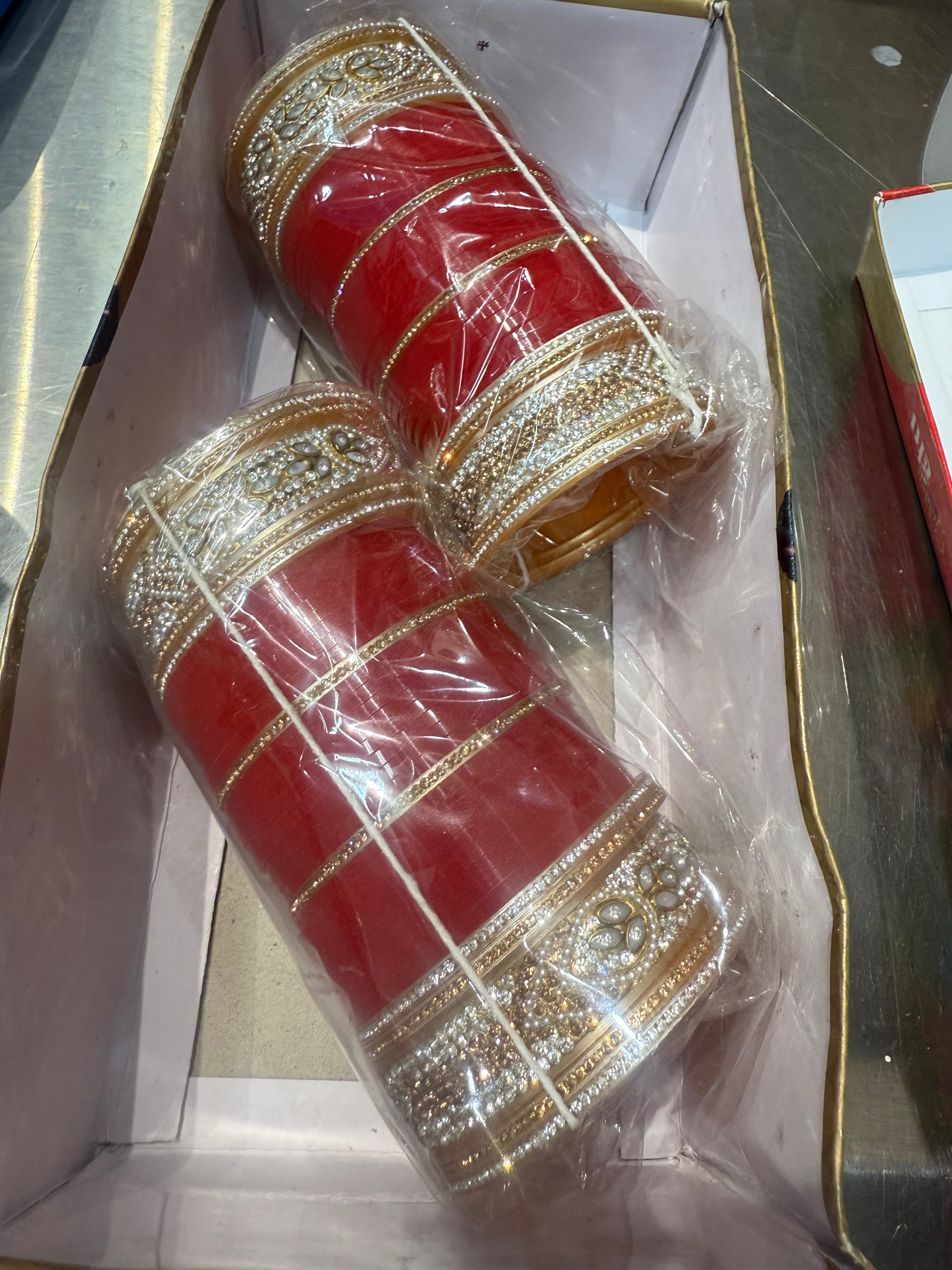 This beautiful designer choora pairs traditional chura styling with ethnic designs. The perfect accessory for formal or special occasions, this choora adds an elegant touch to any outfit. Made with high-quality materials for durability and style.