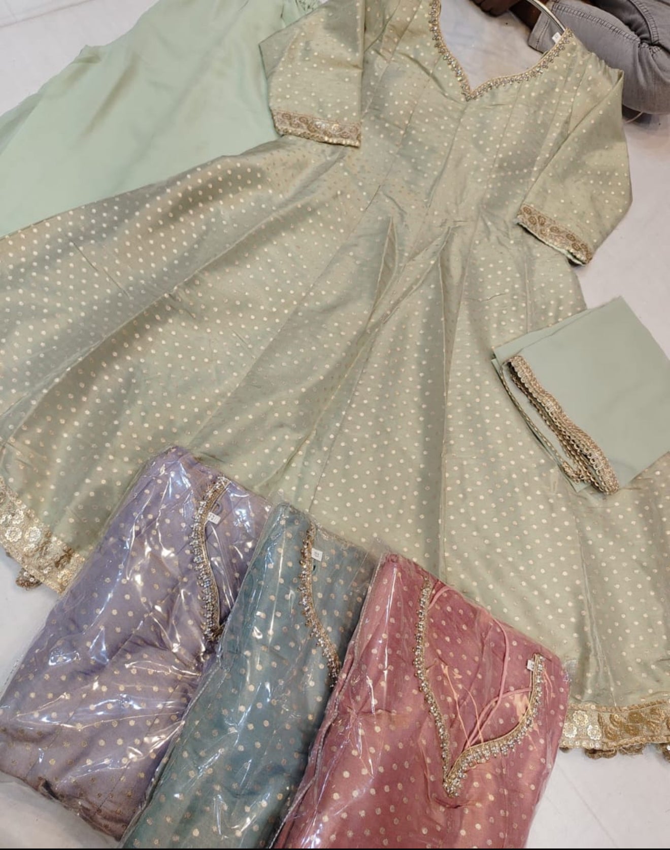 Beautiful designer flare top plazo suit