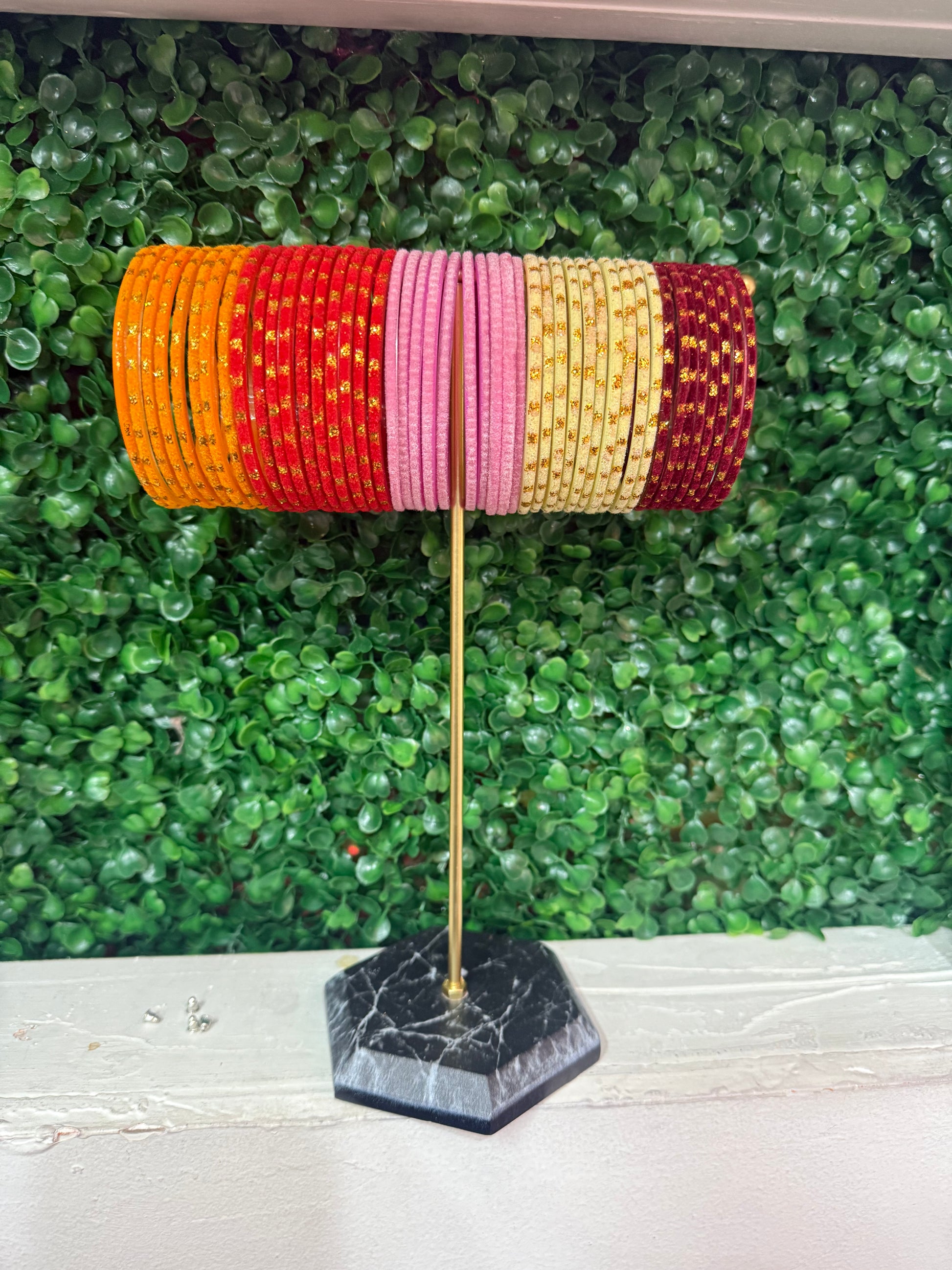 This beautiful designer glass bangle box set features a total of 50 ethnic bangles. The perfect complement to any outfit, these bangles add a touch of elegance and sophistication. With 50 bangles in the set, you'll have plenty of options to mix and match for a unique and stylish look.