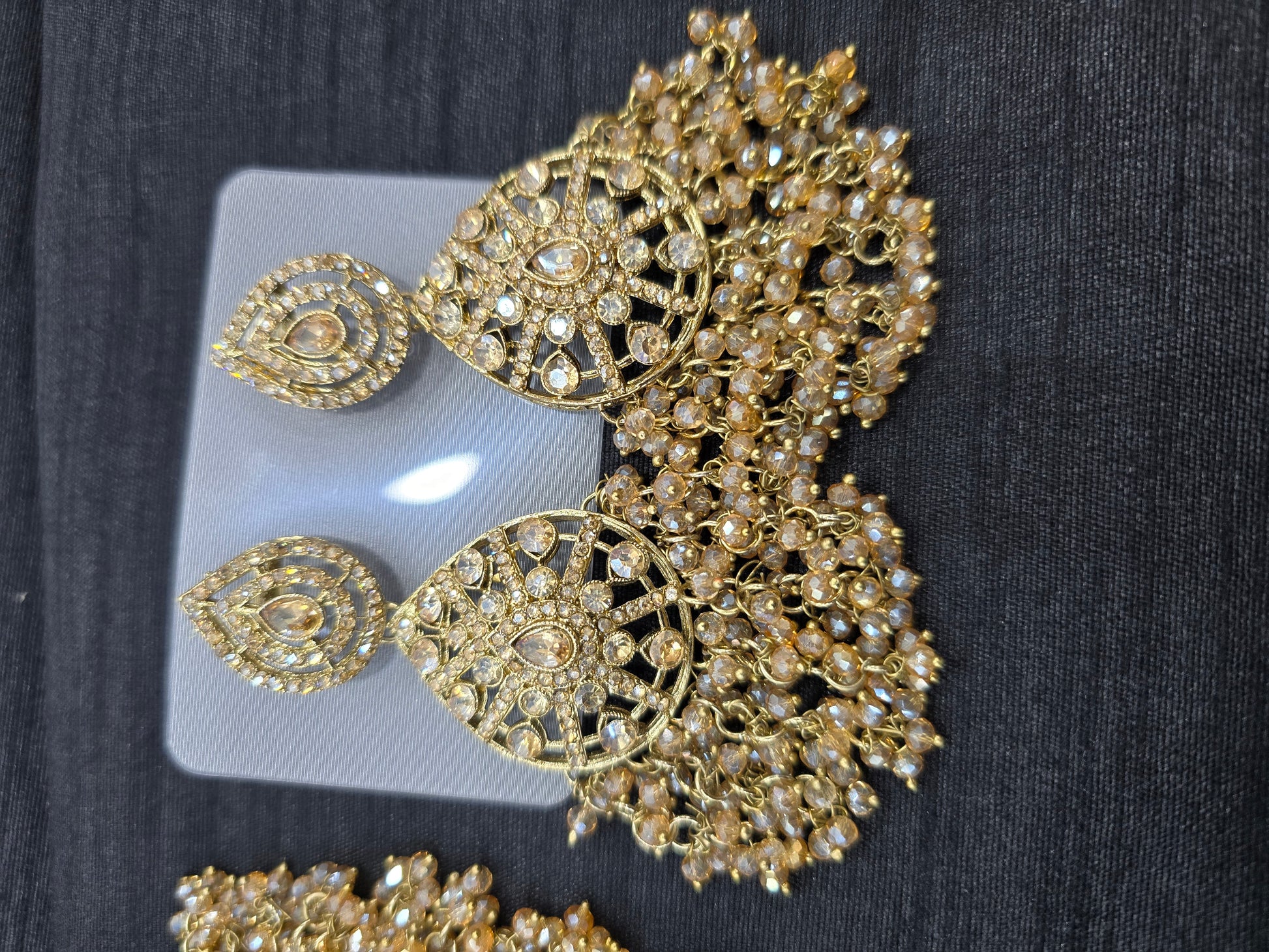 This exquisite designer mirror necklace set boasts a touch of ethnic charm. Crafted with meticulous attention to detail, it offers a unique and stylish accessory for any outfit. Elevate your style with this beautiful set that seamlessly blends culture and fashion.