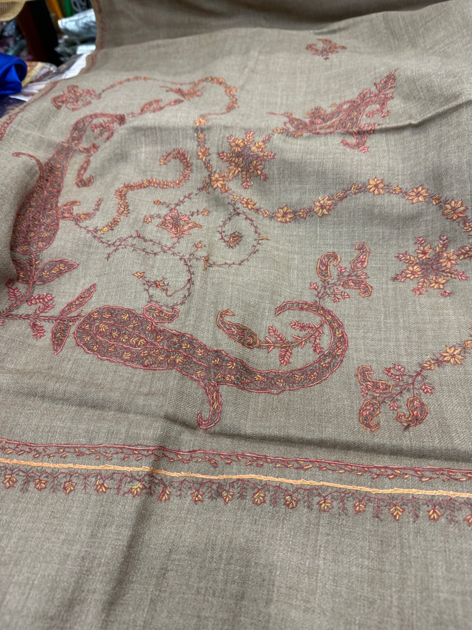 Beautiful designer Kashmiri embroidered pure pashmina shawl