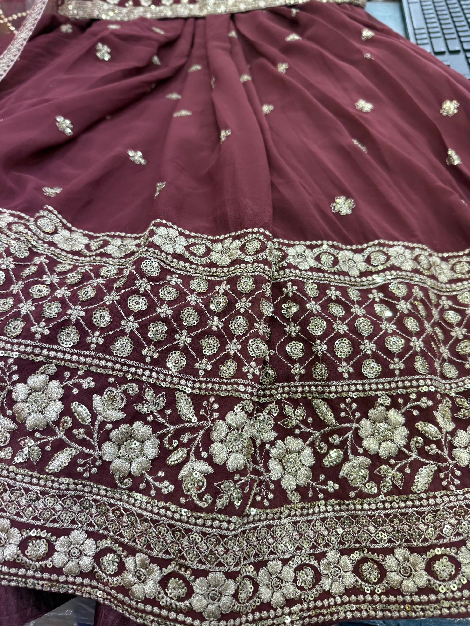 This exquisite lengha choli is made from high-quality geogrette fabric, bringing an elegant touch to traditional Indian fashion. Designed by top designers, this piece is the perfect fusion of modern and ethnic styles. Experience the sophistication and beauty of this designer garment.