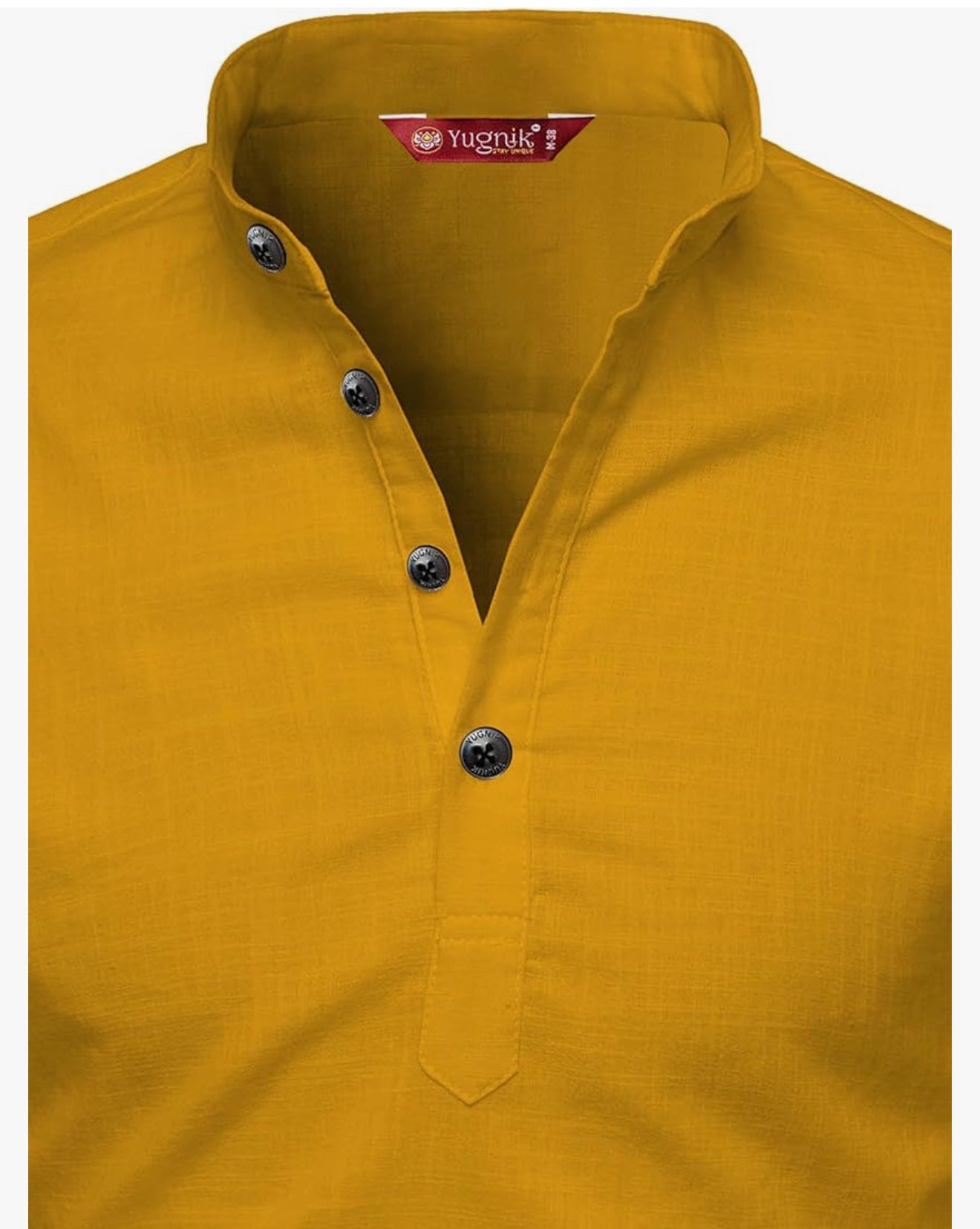 This designer Men's Slim Fit Full Sleeve Yellow Cotton Short Kurta is perfect for making an ethnic statement. Made of high-quality cotton, it offers both style and comfort. Embrace your cultural roots with this chic and trendy kurta, ideal for any traditional occasion.