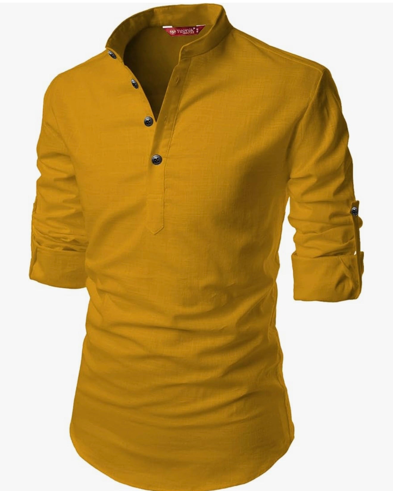 Beautiful designer Men's Slim Fit Full Sleeve Yellow Cotton Short Kurta