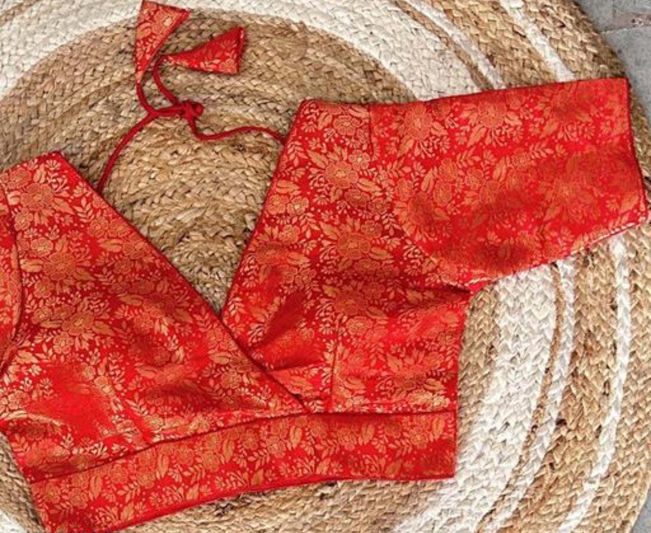 Crafted with luxurious silk fabric, this designer readymade brocade blouse is the epitome of elegance. Its exquisite material adds a touch of sophistication to your attire, making it perfect for any formal occasion. Elevate your style with this beautiful blouse.